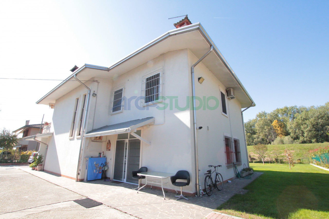 L'abitazione è posta a due passi dal centro del paese in una piccola via chiusa e affaccia al verde della campagna; è stata edificata a metà degli anni ‘80 e si sviluppata su due livelli. Al piano terra troviamo un bel portico d'ingresso, una comoda taverna con camino, una grande sala relax con adiacente una camera matrimoniale creata per gli ospiti, un ripostiglio e un bagno con lavanderia e centrale termica; al piano primo l'abitazione principale si dispone con ampio soggiorno-pranzo con terrazzo su due lati, cucina abitabile, due camere matrimoniali, una camera singola, un bagno completo e un secondo bagno ospiti. Nello scoperto esclusivo troviamo anche dei ricoveri attrezzi e delle piccole tettoie.